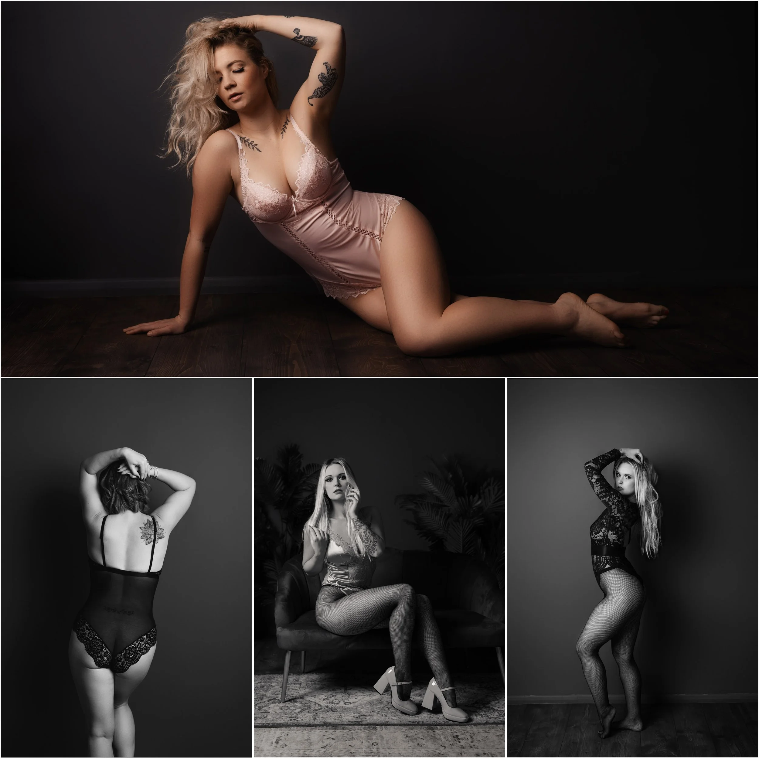 A bodysuit works well for lots of poses and flatters all body shapes. A lot of the poses will show your stomach, so if you are a little conscious about your stomach area, a body is the answer! Some of the poses will also naturally show skin folds and rolls, which are 100% natural but a lot of ladies don’t like to see them in photographs of themselves, again, body suits are ideal for this.